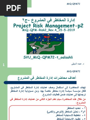 عورشملا ف رطاخملا ةرادإ ج 2 Project Risk Management P2 Svu Miq Qpm72 T Oalsahli