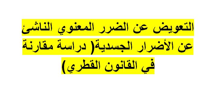 التعويض عن الضرر المعنوي الناشئ عن الأضرار الجسدية دراسة مقارنة في القانون القطري