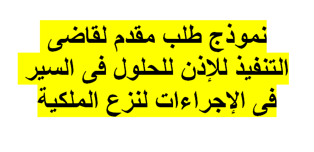 نموذج طلب مقدم لقاضى التنفيذ للإذن للحلول فى السير فى الإجراءات لنزع الملكية